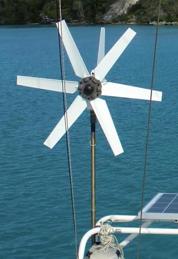 Au portant, elle donne peu. Au mouillage elle donne peu. Il n’y a qu’au près par vent fort qu’elle donne vraiment, soit 2% du temps… Et le 20 novembre 2010, une des pales a cassé net durant la nuit… Heureusement sans défoncer les panneau solaires… Un oiseau qui s’est suicidé ?