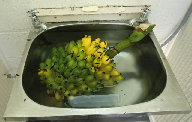 Avant de quitter Niue, on se prend un régime de banane au marché.