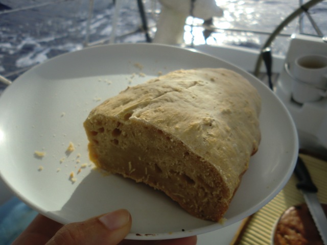 Un pain bien compact, et bizarrement au fort goût de levure. Ca se mange… On en a mangé plus d’un…