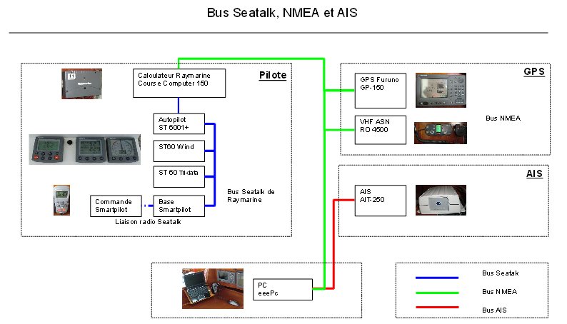 Un bus caractérise à la fois le cablage reliant un ensemble d'appareils, et le format des données échangées. Les équipements électroniques de navigation sont reliés entre eux par trois bus distincts.