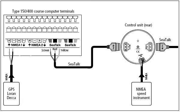 Le câblage est on ne peut plus simple. Les équipements Raymarine sont reliés en série par des câble Seatalk, et échangent des informations au format Seatalk (force du vent, angle du vent, profondeur, température de l’eau, cap suivi, commandes du pilote…).