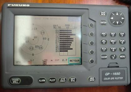 Le GPS Furuno est relié au calculateur du pilote et à la radio VHF ASN par une paire de cables sur borniers. Il transmet des informations au format NMEA 183: Position GPS, Cap suivi, Waypoints GPS à suivre par le calculateur, corrections à apporter au cap pour coller aux waypoints…