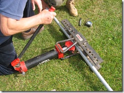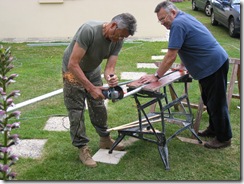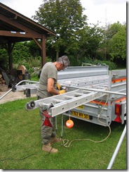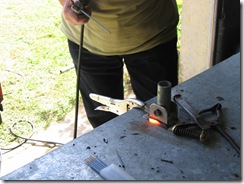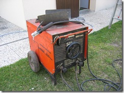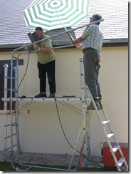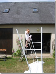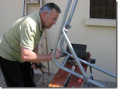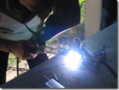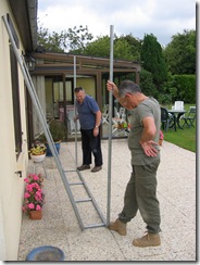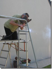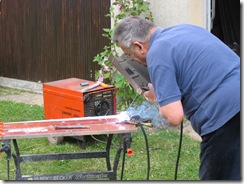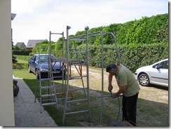 Installation de l'échafaudage à l'ombre histoire de mieux voir ou on soude, et c'est parti mon kiki.