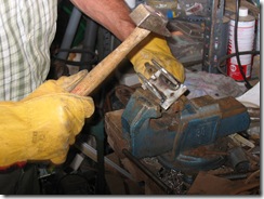 Le pied est pointé, puis soudé, et l'angle d'ouverture est finalisé au marteau.