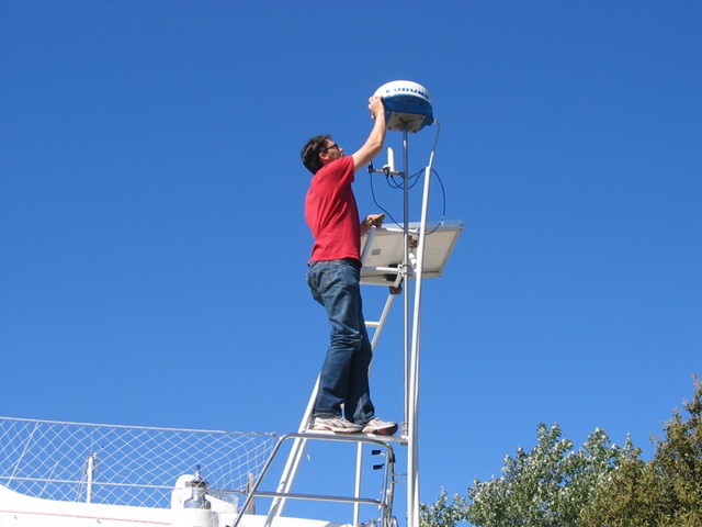 Fixer la version définitive en inox du mât du radar et de l’éolienne
