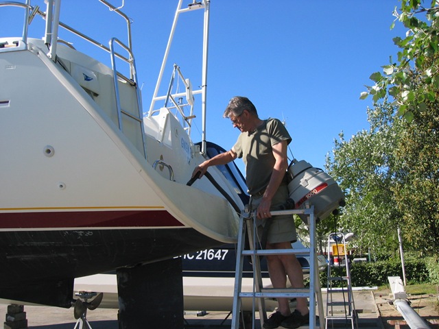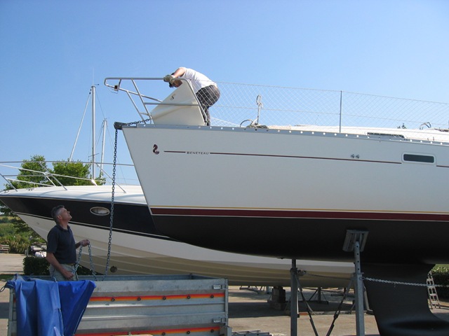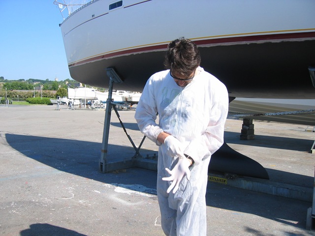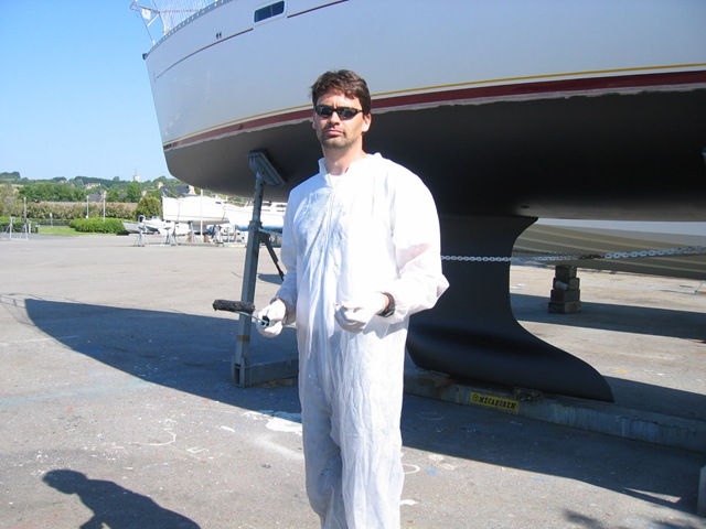 Passer la coque au karcher, la poncer, remonter la ligne de flottaison et poser quelques couches d’anti-fouling.
