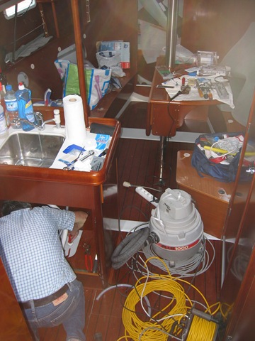 Une fois Gwen sur le Ber à Carteret les derniers travaux ont commencé. A vue de nez, trois fois rien, quoique en regardant dans le détail…