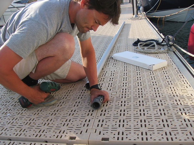Poser des feux à LED en tête de mat, et accessoirement les câbler au tableau électrique. En profiter pour établir le schéma de câblage du tableau électrique à coup de voltmètre et de testeur de continuité.