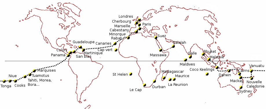 Toute lhistoire de notre tour du monde à la voile sur le Gwen Ru, un petit Oceanis de 10m.