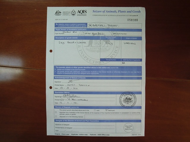 Il est déjà temps de faire les formalités de sortie d’Australie avec des officiers charmants.
