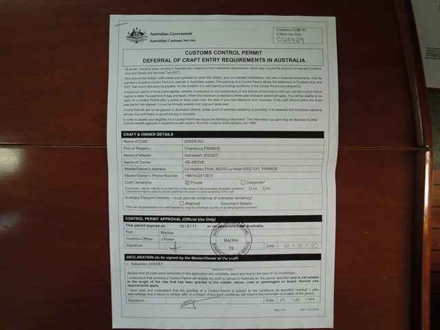 Une fois le petit Gwen garé au ponton de quarantaine de la marina de Mackay, deux charmantes officiers des douanes (customs) et de l’immigration sont montées à bord.