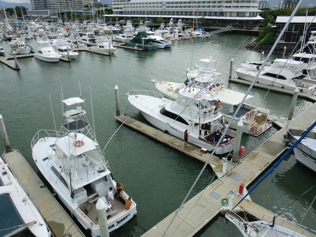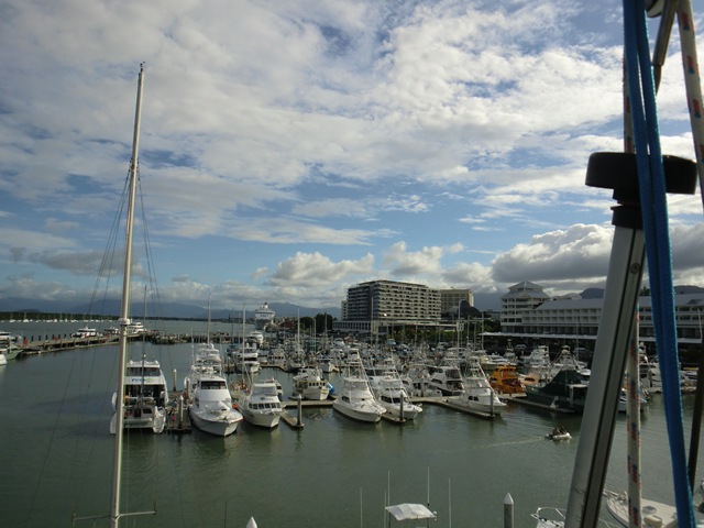 Sur place, vers les 8h00 locales, Gwen faisant des ronds en face du port de Mackay, appel sur le canal 16 aux customs, puis à la marina pour les prévenir de notre arrivée.