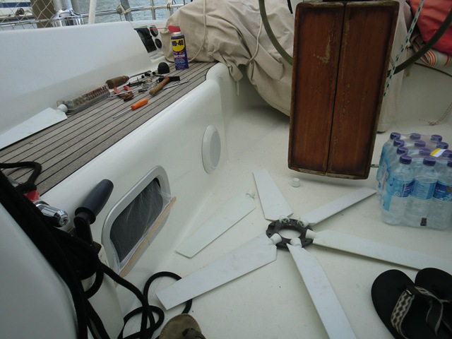 Bilan : Pas de casse, juste de l’usure. Autant le bateau que l'équipage a besoin de souffler. On remplacera la pompe à eau et on fera renforcer les voiles à Bali. Quand à nous, on va dormir un peu et se faire un petit spa balinais :)