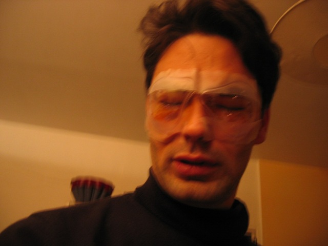 Bon ben ça été ça pendant quelques jours, avec les lunettes ça fait plus classe. J'adore la radio. Question: comment se faire des pattes au beurre sans y voir ? comme pour le reste (voir plus haut), on se démerde (heu, c'est pas un gros mot au moins ?).