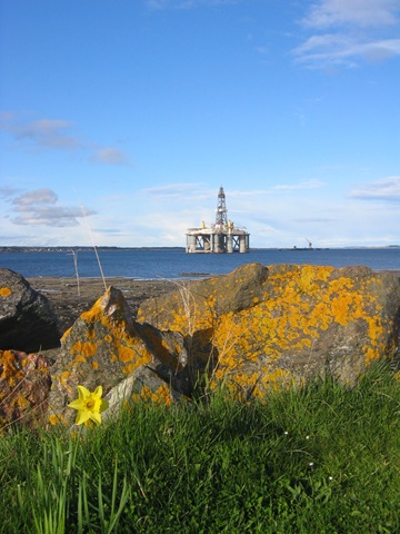 Au loin nous voyons les restes de pompes à essences. Pendant la guerre, les navires venaient se ravitailler en fuel sur ces immenses derrick en pleine mer. Nous tombons sur une jolie petite fleur jaune qui ne demande qu'a faire la belle et poser pour la photo.
