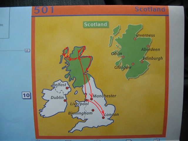 Londres, Liverpool, Inverness ou nous établissons notre camps de base pour rayonner dans le Nord, l'Ouest, l'Est, et retour par Manchester