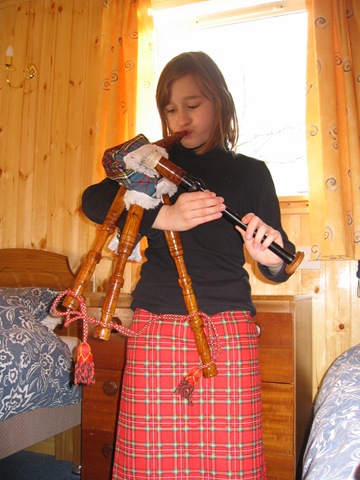 Nous n'avons pas tout perdu, j'ai récupéré un kilt pour Titouan, et une cornemuse pour moi. Ca promet d'être fun.