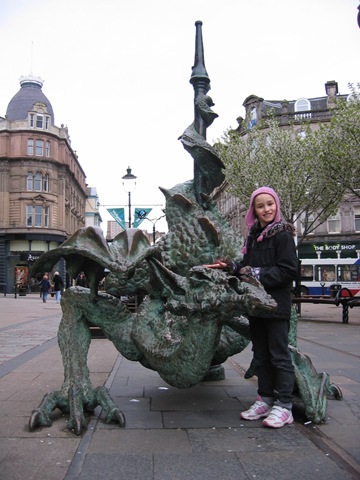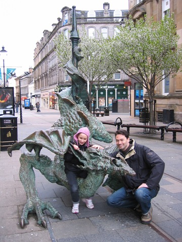 Nous nous installons dans la petite ville de Dundee. Et là direct nous tombons nez à nez avec un des bébés de Nessy. Un bébé dragon. Je fonce dessus et à coup de caresses, je le dompte direct ! Yessssss !