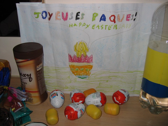 Coooool, ce matin c'est Pâques. On n'a pas trouvé Nessy, mais j'ai trouvé des oeufs en chocolats moi !!