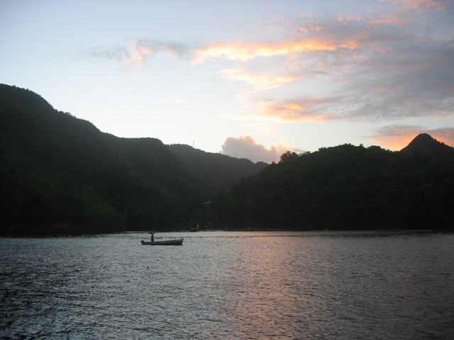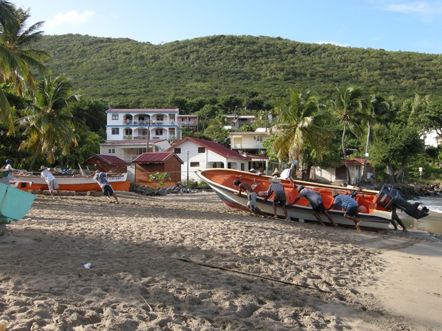 On sera délogés à 5h du mat de l’anse noire par des pécheurs qui veulent tirer leur filet… C’est vrai, y en a qui bossent. A 7h ils auront terminé leur journée et ils rangent le matériel avant de se préparer pour l’apéro. Maximum respect !