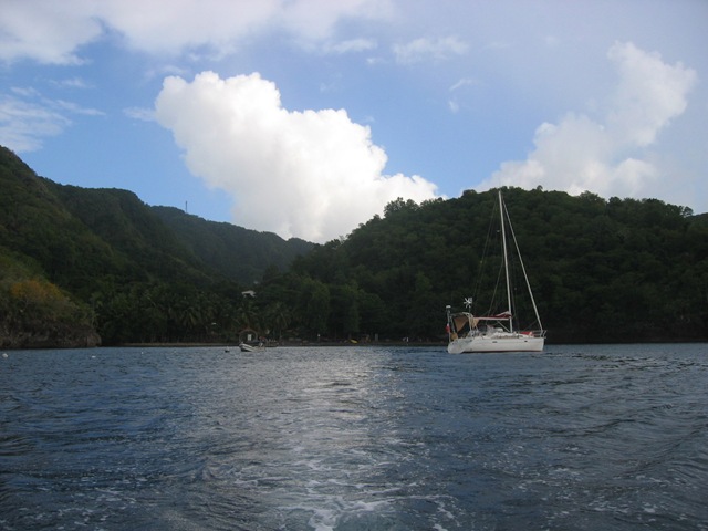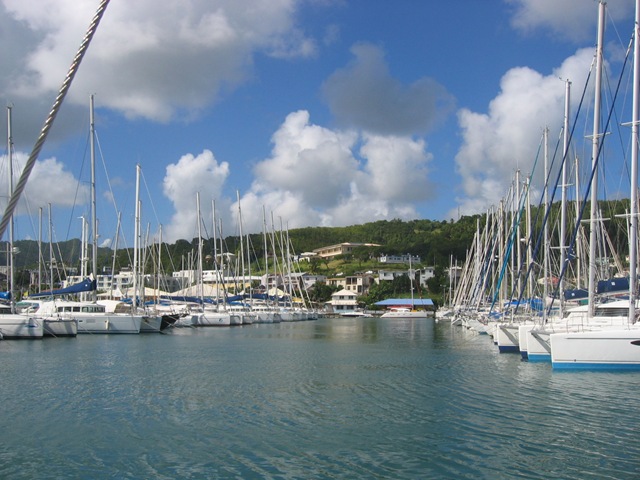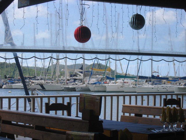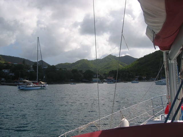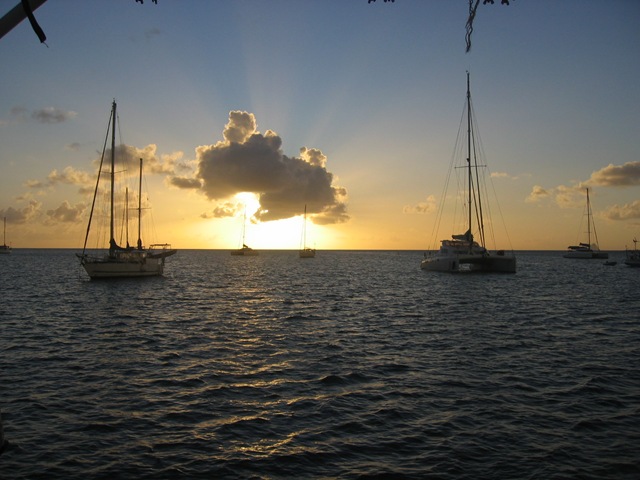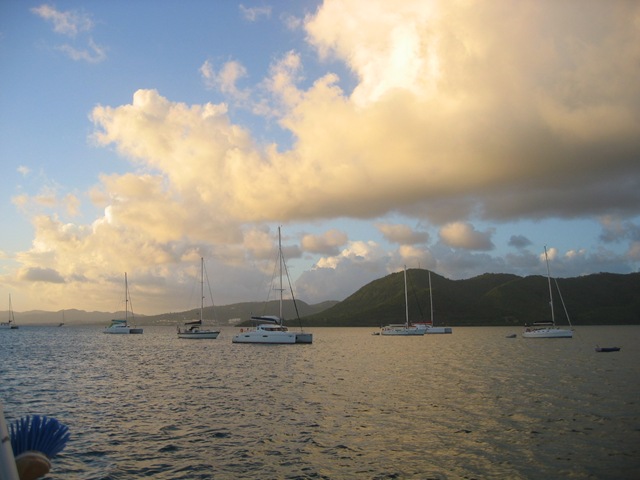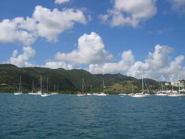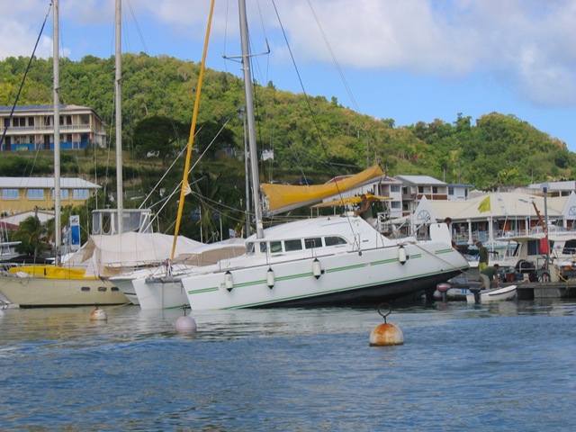Une nuit au ponton du Marin, un nettoyage complet du bateau et des voiles, et ensuite une place au mouillage. La marina est trustée par les énormes catas de location. Avec les 10m de Gwen, je fais office de nain. Ici, la moitié des bateaux au mouillage sont des catas de 12m minimum, et l’autre moitié des voiliers de 12 à 15m.