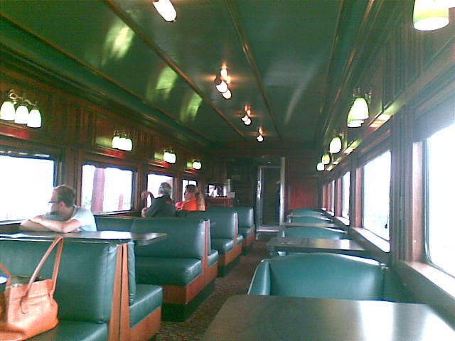 Voyage sympa en train, classe pullman dans des vieux fauteuils en cuir…