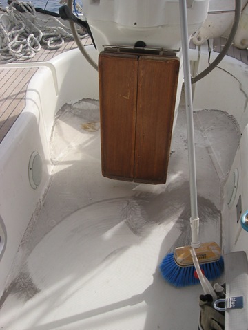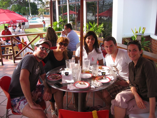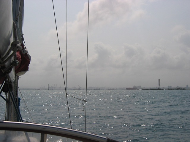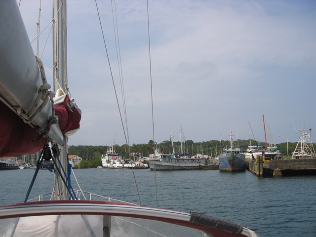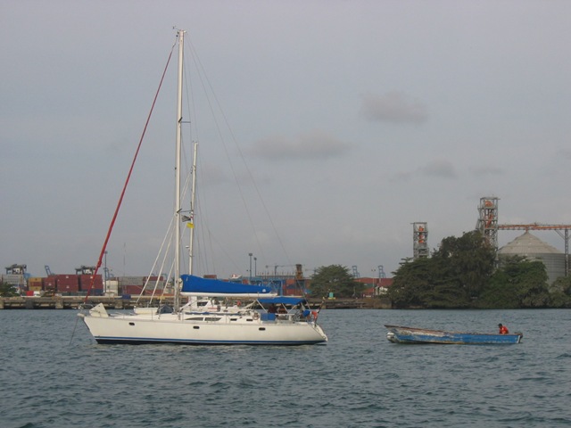 Les bateaux français se refilent des tuyaux, chacun se débrouillant pour faire simple et à moindre coût. Le super plan français, s’appelle Tito. On se met au mouillage dans les Flats. La zone de mouillage glauque au milieu du port juste à coté de la décharge et du bidonville. Il n’y a aucun endroit pour ranger les annexes. Pour aller en ville, il faut donc attendre Tito et son bateau taxi (qui vient s’il en a envie, jusqu’à deux jours d’attente) ou garer son annexe comme un sauvage à coté des pilotes, devants un énorme porte container, et se faire la moitié des docks à pieds. C’est ce que j’ai fait bien sur… Près d’une semaine au total pour tout boucler dans un décors de docks lugubre. J’ai eu la chance de croiser Michel et Yves au mouillage. Les frangins ‘cubi’. On a galéré ensemble.
