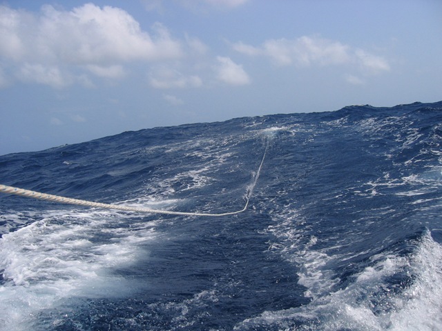 Dix jours, deux ris dans les voiles, à avancer tranquillement dans une mer changeante. Photo deux, sur les cotés c’est le sillage de Gwen, on dirait presque que ça booste !
