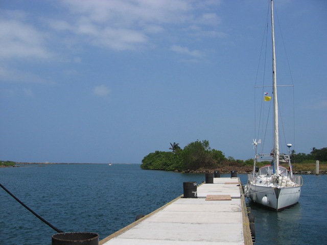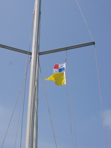 Enfin je passe le brise lame de Colon, le drapeau panaméen (fait à la main) dans les haubans par politesse et le drapeau jaune pour informer l’immigration que j’ai conscience de ne pas être en règle et que je compte m’occuper de la paperasse avec sérieux et le plus vite possible.