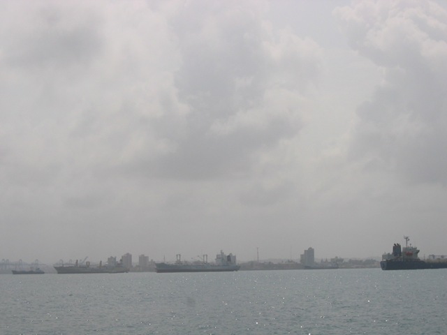 L’approche du port de Colon se fait dans la brume, des monstres au mouillage hors du port (hydrocarbure et produits explosifs obligent) sortent du brouillard un à un.