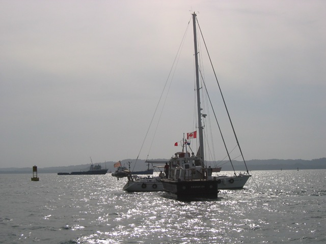 Les deux voiliers sont attachés ensemble. Chacun a deux amarres de 40m reliés à terre.