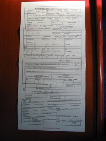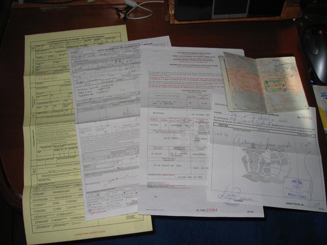 Il a fallu que j’aille en taxi a son ‘office’ en plein milieu des bidonville pour récupérer moi même le matos. Le zarpe n’était pas prêt il me faudra donc le refaire à Panama city.