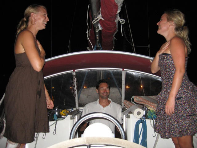 Au deuxième acte, on est retourné les voir pour dire que s’ils avaient été plus poli on serait parti direct. Parce qu’entre gens de mer (Rhoo, j’ai pu dire un truc pareil sans me marrer ?) on comprend parfaitement que l’on ne peut pas décemment rester dans leur zone d’évitage pour la nuit.