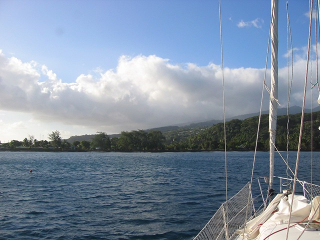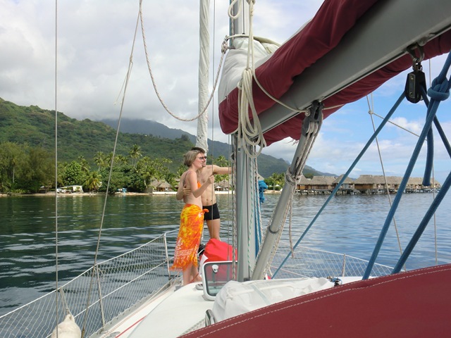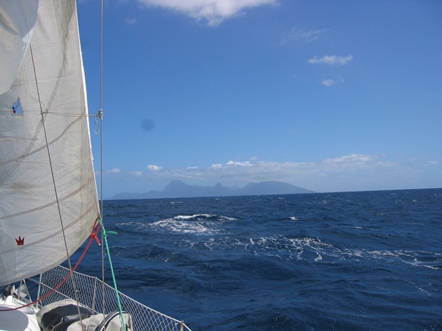 Départ un peu en vrac, qu’est ce qui s’est passé avec la grand voile ? Mooréa en toile de fond.
