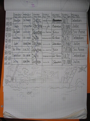 Et c’est reparti pour deux jours de nav, au rythme des quarts, sous la nuit, le vent, les vagues et la neige (heu, non pas la neige). On peut dire qu’on se mange du gros. Comme d’hab, quoi.