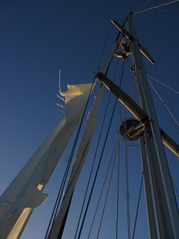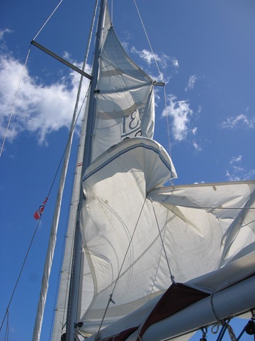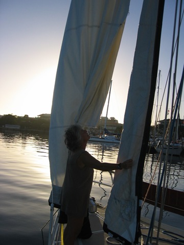 Et de réparer les dernières casses... On y passe du temps… Tiamanga a déchiré son génois dans la traversée. Quand à moi, mes chariots de grand voile sont définitivement HS.