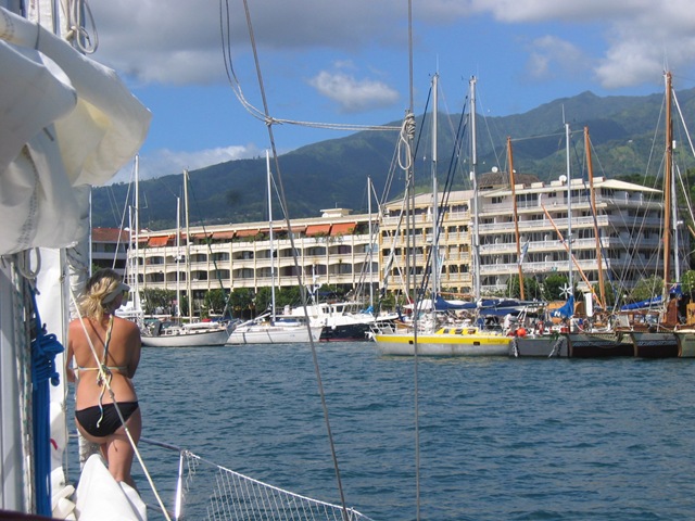 Gwen garé au quai des yachts, nos sommes en plein coeur de Tahiti. C’est l’occasion de visiter un peu la city.