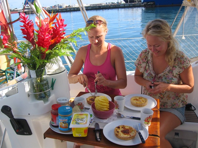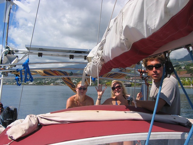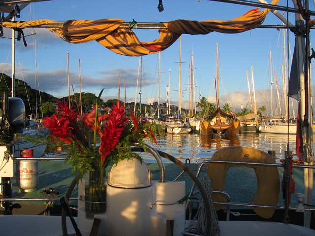 Arrivée au ponton d’un énorme cata ayant à son bord John the basque, du pays basque espagnol. John se joint à nous pour quelques jours, et nous quittons le quai des yachts pour le mouillage de la marina Taina à l’ouest de Tahiti.