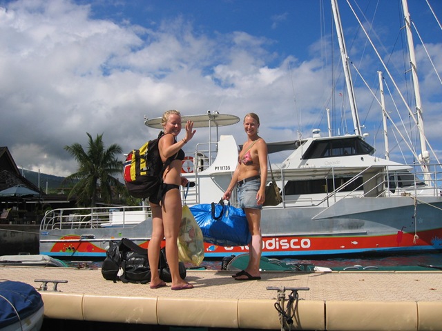 Flo et Emilie préparent leurs plongées du lendemain. Contact téléphonique avec les clubs. C’est impec, ils plongent avec le club qui est à Vaiere. Rendez-vous est pris pour le lendemain matin à 8h.