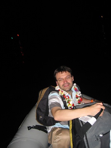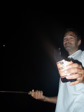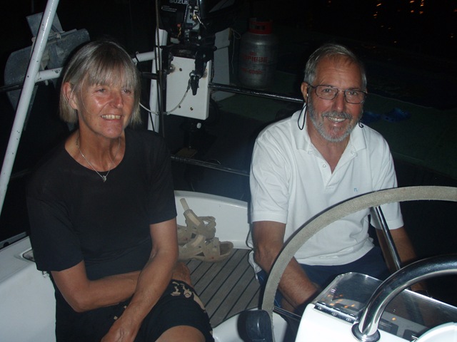 Bon, ça s’est déroulé en deux actes. Ca c’était le 1er acte, Michel s'étant littérralement jeté sur son annexe pour vole à notre secours, on en a profité pour les planter et on est allé faire le plein des jerricans de gasoil en annexe. Il faisait encore jour.